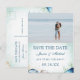 Faire part moderne de calligraphie à l'aquarelle avec des coquillages, des étoiles de mer, des algues. Fond à l'aquarelle bleu sarcelle. Combinaison de polices élégante. Parfait pour un mariage à la plage ou un mariage de style nautique.