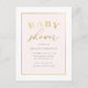 Invitation Carte Postale Faire-rose poudré doré typographie Baby Shower élé