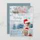 Un arrière - plan de scène hivernale avec de la neige dans les couleurs turquoise -vert clair bleu et rouge vif Père Noël têtes sur vos animaux de compagnie préférés