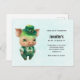 Carton d'invitation à une fête de la Saint-Patrick avec une illustration verte mignonne d'un cochon debout sur ses pattes arrière, habillé d'un chapeau, d'un gilet et d'un pantalon chic. Très adorable.