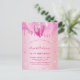 Pour une fête d'anniversaire girly. Un fond métallisé faux rose blush. Décoré de paillettes et de ballons factices. Personnalisez et ajoutez un nom et les détails de la fête. Le nom est écrit avec un style de lettrage manuscrit
