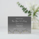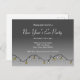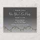 Festive New Year's Eve Party 2024 invitation carte postale, avec un design typographique blanc sur un arrière - plan gris. Avec des lettres personnalisables, vous pouvez ajouter votre propre nom de famille. Une image à cordes blanches et dorées accentue l'avant de la carte. Une façon festive de célébrer 2023 avec des amis et des proches.
