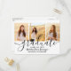 Annoncez une remise de diplôme de lycée ou d'université et invitez votre famille et vos amis à célébrer avec des cartes d'invitation personnalisées en forme de collage de 3 photos. Toutes les images et le texte sont faciles à personnaliser et les couleurs sont aisés à modifier avec l'outil de conception Zazzle. Ce modèle est configuré comme une carte d'annonce et d'invitation à une fête qui peut être personnalisée avec les détails de votre choix, tels que les noms des parents, les distinctions spéciales, le titre du diplôme, la citation inspirante préférée, les projets d'avenir du diplômé ou sa nouvelle adresse. Le design noir et blanc présente une casquette de diplômé, une calligraphie moderne et tendance, une typographie minimaliste élégante et trois photos favorites, telles que des photos de fin d'études ou des images de la cérémonie de remise des diplômes. Cette carte