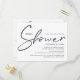 Carte postale de douche nuptiale simple et élégante avec grande calligraphie "douche" en bleu profond avec typographie moderne. De l'autre côté ajouter du texte ou supprimer. Fleurs sauvages en bocal de mason.