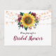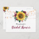 Cette invitation à la douche nuptiale présente un design de tournesol rustique aquarelle avec des roses bordeaux, du feuillage et des lampes à cordes. Le texte de l'invitation est au verso de la carte. Personnalisez-les avec votre propre libellé. Objets correspondants également disponibles. Veuillez consulter la page de collection ou visiter notre magasin pour voir la gamme complète.