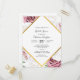 Cette invitation à la douche nuptiale présente un cadre géométrique imprimé à effet or avec des éléments floraux dans les tons rose et blanc fleuri. La mise en page est facile à suivre tout en remplissant vos détails de haut en bas en cliquant sur le bouton "Personnaliser" ci-dessus. La typographie est moderne et en noir. Contactez-nous si vous avez besoin d'aide supplémentaire pour cette carte