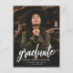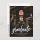 Invités Invitations pour célébrer la grade avec des cartes postales d'invitation à la fête de remise de diplômes en photo branchée. Les invitations de la fête de remise de diplômes affichent la photo verticale du diplômé avec des lettres en blanc "diplômé". Personnalisez le devant de l'invitation en ajoutant le nom du diplômé, le nom de l'école et l'année de fin d'études. La carte postale s'inverse pour afficher votre adresse de retour et les détails de la fête de remise de diplômes.