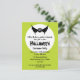 Invitation costumée d'Halloween verte avec une grande lune blanche et une chauve-souris noire au sommet. Tous les textes sont modèle pour faciliter l'ajout de vos propres détails.