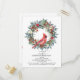 Un beau cardinal rouge est encadré par une élégante couronne hivernale. Il est décoré de fleurs rouges et de baies ainsi que de pommes de pin. Ce design aquarelle intemporel présente une calligraphie tendance pour lui donner une touche moderne. C'est le moyen idéal pour inviter amis et famille à une occasion spéciale.