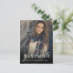 Célébrez votre graduation avec cette invitation photo de la fête de remise de diplômes avec le mot diplômé en calligraphie élégante et un noir sombre chic. Vous pouvez customiser l'invitation de remise de diplômes avec votre photo. Si vous avez besoin d'aide ou de produits correspondants, veuillez nous contacter par l'intermédiaire de notre magasin.