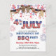 Fête de l'Indépendance Feu d'artifice Rouge Blanc Bleu BBQ Party Invitation carte postale. Célébrez le "Jour de l'Indépendance" avec cette carte d'invitation du parti "4 juillet", chic et patriotique. Tous les textes sont pré-arrangés pour que vous personnalisiez facilement et rapidement avec vos propres détails.