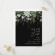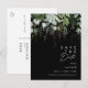 Nous avons conçu cette carte postale d'invitation "save the date" à l'écriture de feuilles dorées et de verdure sur fond noir pour compléter votre mariage bohème simple et élégant. Elle présente des feuilles de eucalyptus vertes et blanches modernes, du feuillage de fougère, une fleur de succulente et des feuilles en feuille d'or minimalistes. Ces éléments donnent l'impression d'une forêt enchantée aquarelle fantaisiste, parfaite pour tout mariage rustique et bohème ! N'hésitez pas à la personnaliser pour qu'elle soit vôtre ; n'hésitez pas non plus à parcourir le reste de la collection pour trouver des produits assortis et coordonnés !