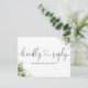 Un élégant script de coeur en noir et blanc feuille vert répond gentiment RSVP. L'inverse vous donne vos détails et une demande amusante de chant invité. Conçu par Thisisnotme©