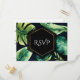 Carte de réponse de mariage élégant noir avec feuilles tropicales vertes. Articles assortis disponibles.
