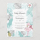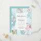Cette carte postale d'invitation est parfaite pour tout baby shower d'été tropical ! Ce design présente une typographie mignonne avec un mélange beau script écrit à la main et amusant, facile à lire en lettres. L'invitation est encadrée d'une frontière de feuilles tropicaux en bleu clair avec un adorable flamant rose, un mignon ananas et une jolie fleur d'hibiscus pour lui donner cette ambiance estivale spéciale !