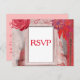 Pas besoin d'une enveloppe, ces fleurs rouges rsvp et les cartes postales de cadre d'image "RSVP écrit dans un cadre d'image en bois. La scène est ornée de fleurs rouges et de feuilles. Le dos de la carte est rose avec une police bordeaux. Achetez le vôtre aujourd'hui ! RSVP Design : WeddingsbyRhoadie Illustration du thème de l'automne devant : Oberholster Venita