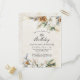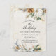 L'un de nos modèles d'invitation d'anniversaire floral hivernal les plus populaires est placé sur une carte postale pour votre commodité et pour maintenir votre budget sur la bonne voie. De jolies fleurs blanches et des pommes de pin brunes sont nichées dans le feuillage vert de pin hivernal. Le design est encadré dans un fond blanc ivoire texturé avec des paillettes d'or.