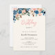 Invitation Carte Postale Fleurs d'aquarelle rose et bleu Anniversaire