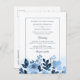 Invitation Carte Postale Floral moderne bleu aquarelle Mariage