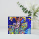Peinture aquarelle colorée, fantaisiste et vibrante en rouge vif, bleu, vert, jaune doré, rose, fuchsia inspirée du Carnaval de Venise et de la Commedia dell'Arte. Un joueur de flûte expressif la nuit, au clair de lune et un chat bleu. Ce design cool et artistique est également un beau cadeau pour des occasions spéciales, anniversaires, mariages, Noël, vacances, Mardi Gras, saison de carnaval.