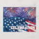 Send a festive Independence Day celebration postcard to friends and family. The design features a textured, painted American flag waving beneath vibrant, artistic fireworks. Use this as a striking invitation for your Fourth of July party.
