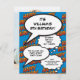 Customisez avec le nom et la photo de la fille ou du garçon d'anniversaire et tous les détails de la fête. Une invitation d'anniversaire amusante, bleue, cool et tendance rétro de la bande dessinée pop art qui met le wham, zap, pow dans n'importe quel événement de célébration d'anniversaire de super-héros. Conçu par ComicBookPop© à l'adresse www.zazzle.com/comicbookpop*
