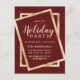 Cette invitation de fête de vacances chic et moderne est le choix idéal pour la saison des fêtes. Le design représente un arrière - plan d'aquarelle rouge bordeaux peint à la main avec des cadres doubles géométriques en faux or avec une typographie correspondante.