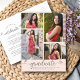 Soyez fier, réjouissez-vous et présentez cette étape de votre carrière préférée ! Envoyez cette carte postale d'invitation à la fête de collage de photos 4 personnalisées, simple, moderne, girly, étonnante, pour un événement à retenir. Un visuel amusant et ludique de l'écriture manuscrite gris et mignon, coeurs ludiques, avec son nom, l'année de classe, l'école et 4 photos de votre choix superposent un arrière - plan rose pâle. Personnalisez le texte personnalisé avec le nom, l’école et l’année de classe de votre élève sur le devant. Au verso, ajoutez votre note personnelle, les renseignements sur la fête, la prochaine école où elle fréquente, etc. Des cartes de remerciements, des toppers casquettes, des plaques photo et d'autres cadeaux de remise de diplômes sont également disponibles dans cette collection branchée et élégante. Garanti d'ajouter du plaisir élégant à leur occasion spéciale! Il suffit de taper le nom de votre diplômée, l’année scolaire et l’année de classe, d’ajouter leurs 4 photos, et vous pouvez facilement personnaliser cette carte postale d’invitation à la remise des diplômes. S'il vous plaît, envoyez-moi un message avec toute question ou demande.