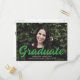 Invitation Carte Postale Gras Green Script Photo Graduation Party