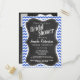 Invitation Carte Postale Han Blue Chevron Stripes; Chalkboard look