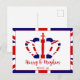 NouvelleAlléeParc - Carte postale, avec l'Union Jack sur les bords et une couronne royale colorée avec un drapeau britannique et 'Harry & Meghan' dans une typographie élégante.