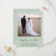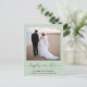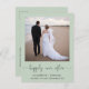 Sage green elopement ou petite faire-part mariage et carte postale d'invitation à la réception qui contient votre photo, "heureux toujours après" écrit dans un élégant script avec des swashes et vos noms, date et emplacement mariage. Au verso, personnalisez votre faire-part mariage, ajoutez une invitation à la réception ou à la fête et signez vos noms de famille dans un script signature.