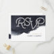 Design moderne chic simple typographique RSVP sur arrière - plan couleur bleu indigo foncé, idéal pour mariage moderne, mariage du soir ou mariage nautique. Voir toutes les pièces correspondantes dans la collection ci-dessous.