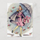 OEuvre vintage d'un joli convive de douche nuptiale portant un emballage cadeau emballé et tenant un parapluie pour empêcher les fleurs de pluie