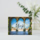 Les arches de la Villa Balbianello dans la ville de Lenno sur le lac de Côme, Italie sont la toile de fond élégante d'une carte postale RSVP Enclôture de style italien. Cette carte postale unique a la même photo sur le dos et présente les couleurs du bleu, du vert et de l'or ainsi que le script écrit à la main. Personnalisez avec votre nom et les informations RSVP. Voir la suite Mariage complète dans ma collection de suites Mariages Arches Of Italy.