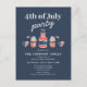 Carte Postale Rouge Blanc Et Bleu 4 juillet Fête Invitation.