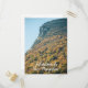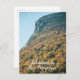 Une photo du mont Cannon à l'automne. Les feuilles des arbres sont passés du vert aux tons orange et jaune. Ces couleurs recouvrent la montagne, atteignant le sommet. Le profil de la montagne est le vestige de la pierre de granit, où se trouvait autrefois un visage de premier plan, tandis qu'il attendait et observait son amour pour revenir à lui. Ce jour d'automne a un ciel clair et bleu clair comme l'arrière - plan de la scène. Dans une police blanche est un message d'accueil, "Salutations du New Hampshire !" Copyright ©2024 Kimberly J Tilley. zazzle.com/store/developingnature
