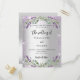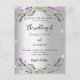 Une faire-part de mariage moderne et design. Un arrière - plan faux argenté avec parties scintillant violette, étincelants, fleurs de lavande, fleurs et végétation d'eucalyptus. Personnalisez et ajoutez vos noms et les détails.
