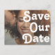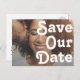 Cette carte postale d'invitation horizontale moderne rétro "save our date" est parfaite pour votre mariage d'été bohème vintage simple et unique. Le lettrage est dans une police noire élégante et chic des années 70, donnant à ce design des vibrations hippies minimalistes classiques. Vous pouvez ajouter vos propres graphiques ou images si vous souhaitez le personnaliser. N'hésitez pas à nous contacter si vous avez des questions concernant la conception du produit ; nous serons ravis de vous aider !