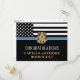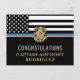 Ce design présente un drapeau de force de police avec des bandes noires et blanches, ainsi qu'une fine bande bleue. Le badge de police et le texte doré se trouvent au-dessus de tous les détails de la fête pour la retraite de l'agent des forces de l'ordre, du shérif, du capitaine ou du chef à la retraite.