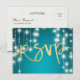 Invitation Carte Postale Lumières Guirlandes Bleu Or Texte Réponse Mariage