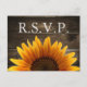 Invitation Carte Postale Mariage campagnard rustique Bois et tournesols RSV