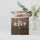 Chaîne rustique des lumières Mariage carte postale RSVP | arrière - plan de tonneau de chêne de la grange de campagne, lumières à cordes scintillantes, et libellé mariage moderne. Trouvez d'autres cartes rsvp de mariage barnyard à http://www.zazzle.com/special_stationery Cliquez sur le bouton "Customiser" pour personnaliser davantage ce modèle. Vous pourrez modifier tout le texte, y compris le style, les couleurs et les tailles. Vous trouverez les articles correspondants plus loin dans la page, si toutefois vous ne trouvez pas ce que vous cherchez, s'il vous plaît contactez-moi.