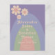 Gras super rétro moderne les années 70 couleurs pastel faire-part de mariage. motif de marguerite minimaliste cool avec arc-en-ciel design en bleu vert pêche rose et lililiac lavande violet. Ce faire-part de mariage ludique de style hippy couleur pastel avec typographie super est facile à personnaliser à l'aide de modèles simples. Idéal pour donner le ton d'un été printemps automne ou mariage d'hiver. OEuvre originale de l'artiste Catherine Sweetman