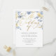Invitation Carte Postale Mariage de script bleu floral Dusty
