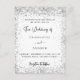 Un arrière - plan blanc à l'avant. Décoré avec de la parties scintillant en faux argent. Personnalisez et ajoutez vos noms et les détails de votre fête. Retour : faux arrière - plan argent