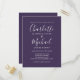 Avec des noms de style signature, cette carte postale élégante de faire-part de mariage violet peut être personnalisée avec vos informations en lettres chic. Conçu par Thisisnotme©