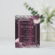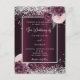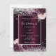 Un profond arrière - plan bordeaux décoré de fleurs bordeaux et roses, de fleurs et de parties scintillant faux argent, brille. Personnalisez et ajoutez vos noms et les détails du mariage. Lettres blanches.