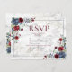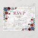 Moderne et tendance, ce design RSVP faire-part de mariage présente une végétation d'eucalyptus aquarelle et des arrangements floraux de marsala bleu et bordeaux poussiéreux, avec de la poussière d'or imitation, sur une texture de marbre blanc imitation, avec "RSVP" dans une couleur bordeaux assortie. Pour supprimer les choix de repas, nous avons créé une vidéo sur la façon d'aller pour vous ici : https://youtu.be/ZGpeldQgxoE Partie d'un ensemble de mariages correspondant. Copyright Invitations élégants. Tous droits réservés.