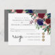 Invitation Carte Postale Mariage Enchanté Marsala Bleu Marine Rose